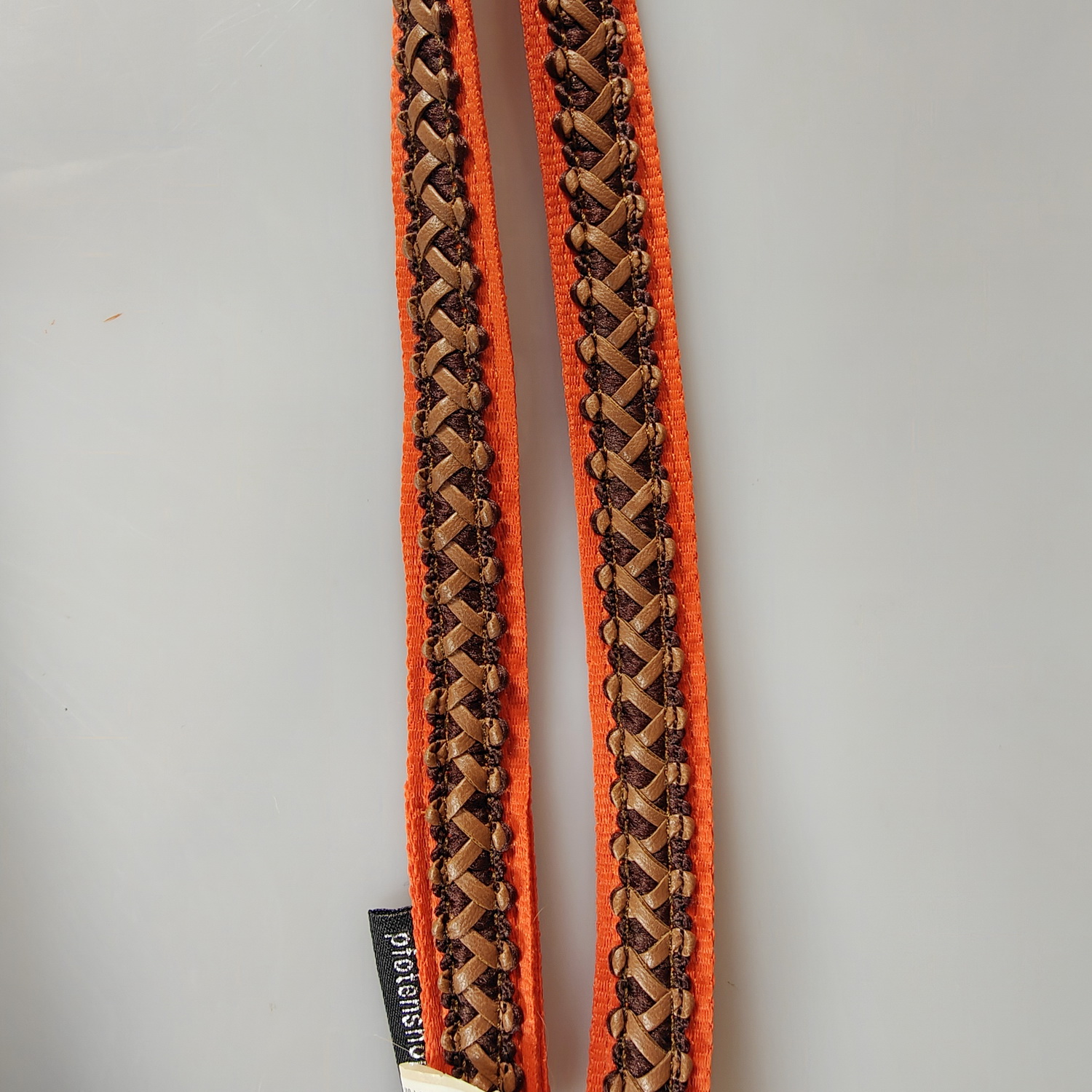 Leine 3fach verstellbar 1.6m - 2m, extra Weich orange, mit Lederband braun