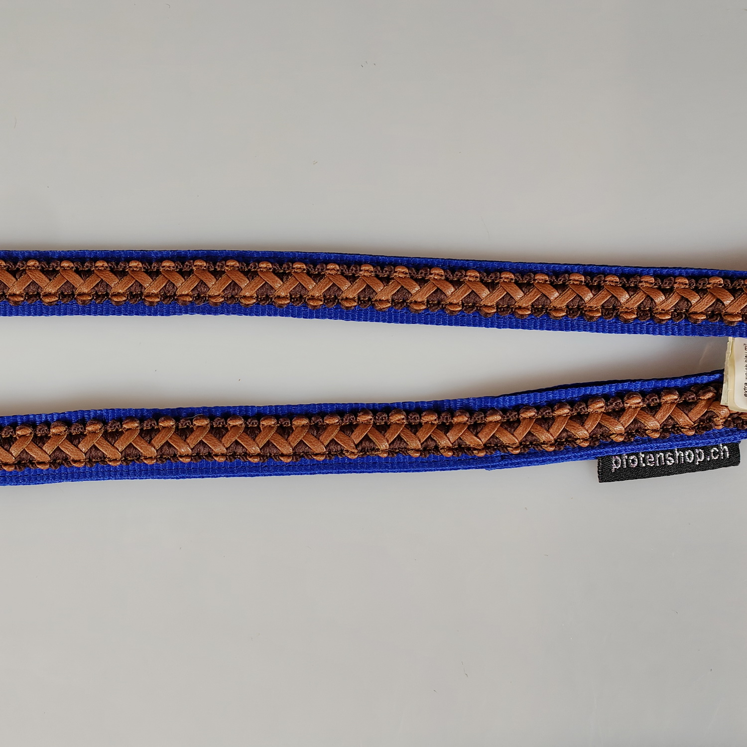 Leine 3fach verstellbar 1.6m - 2m, extra Weich blau, mit Lederband braun