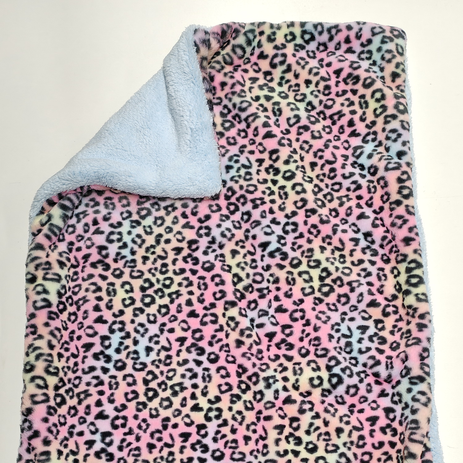 Kuscheldecke, hellblau zottel,  leopard regenbogen teddy, grau 3-fach Fleece