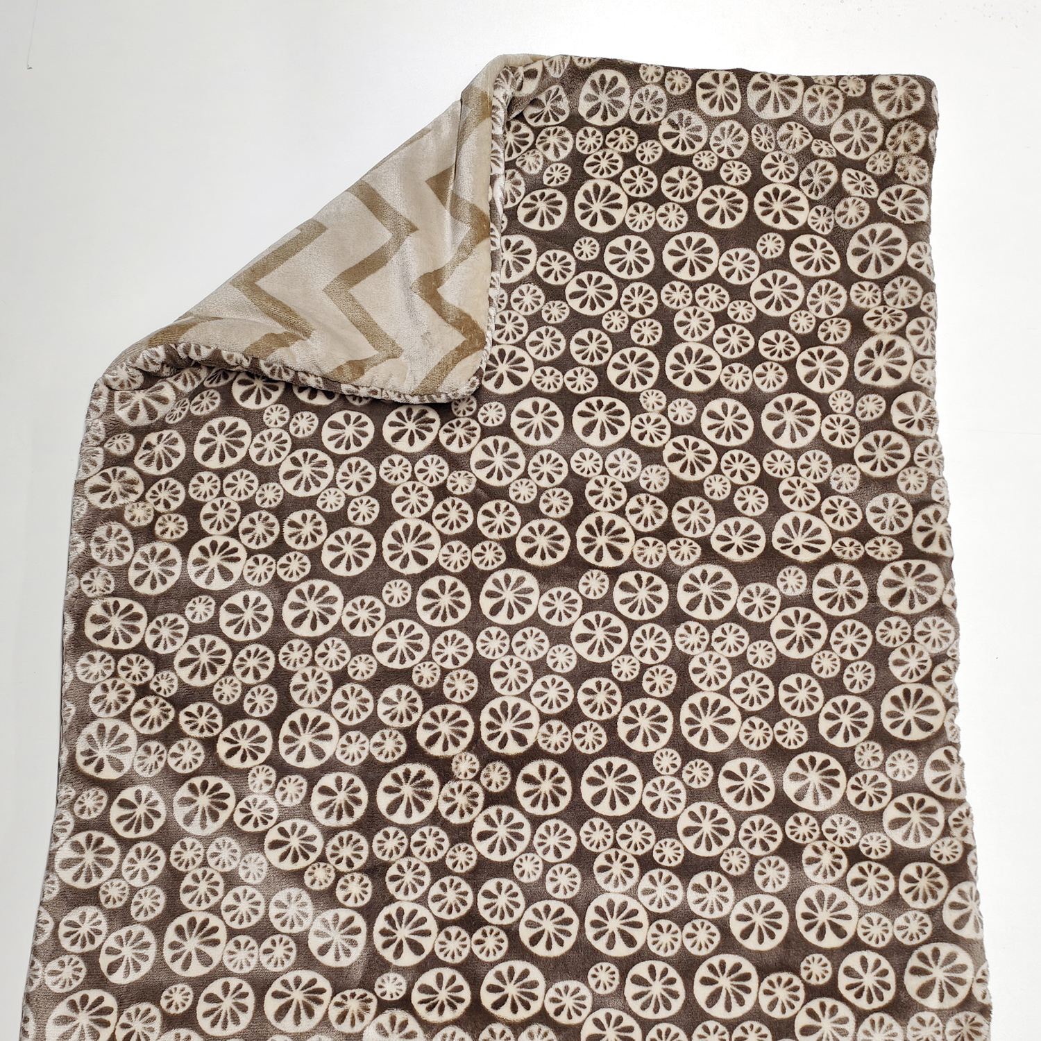 Kuscheldecke, beige mit zick zack, taupe blumen creme, grau 3-fach Fleece